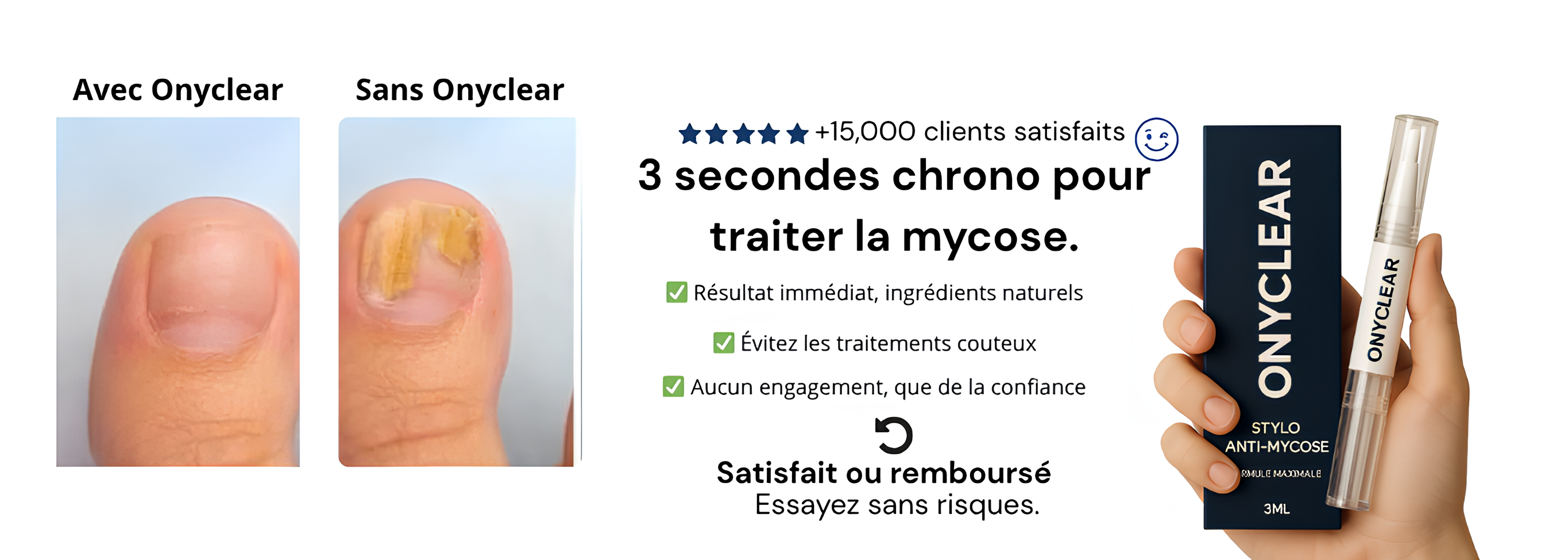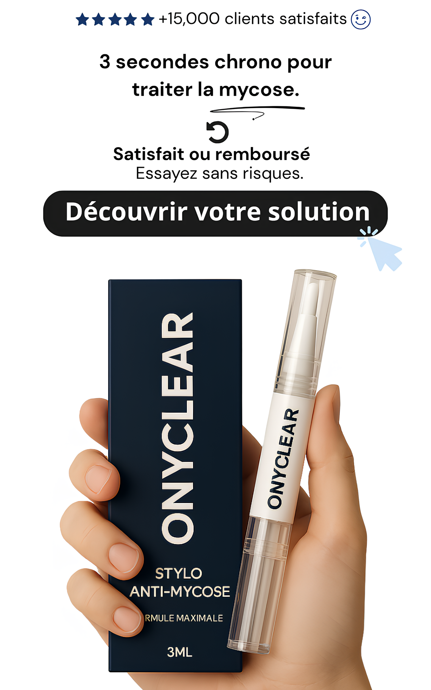 Grâce à notre stylo antifongique Onyclear, profitez d’une solution naturelle, ciblée et efficace pour traiter les mycoses des ongles — sans agresser votre peau.